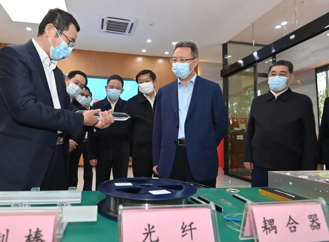 Enterprises are the main body of scientific and technological innovation. Guo Yuanqiang and his party visited Huawei Wuhan Research Institute and Wuhan Ruixin Optical Fiber, which belongs to Aerospace Sanjiang, and asked in detail about independent innovation and product research and development.